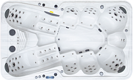 Для каждого места массажные форсунки установлены в индивидуальном порядке, благодаря чему осуществляется воздействие на разные проблемные зоны шеи, спины, икр ног. В конструкции бассейна предусмотрено 33 водных форсунки, их дополняет 10 воздушных форсунок. Силу потока воды каждый пользователь может регулировать для своего места индивидуально.